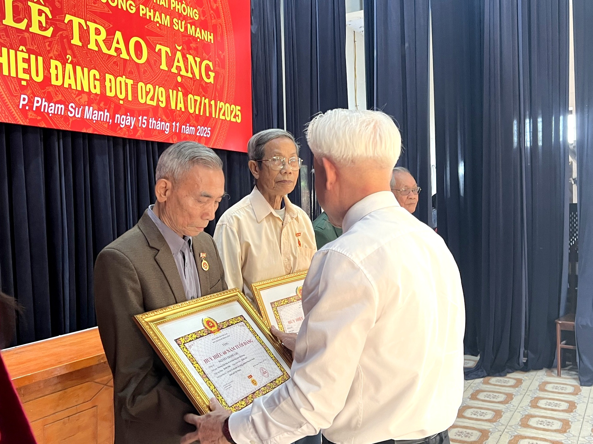 Chiều ngày 15/11/2025, Đảng ủy phường Phạm Sư Mạnh long trọng tổ chức Lễ trao Huy hiệu Đảng cho các đồng chí đảng viên được tặng Huy hiệu 65 năm, 60 năm, 55 năm, 50 năm, 45 năm, 40 năm và 30 năm tuổi Đảng đợt 02/9 và 07/11/2025.