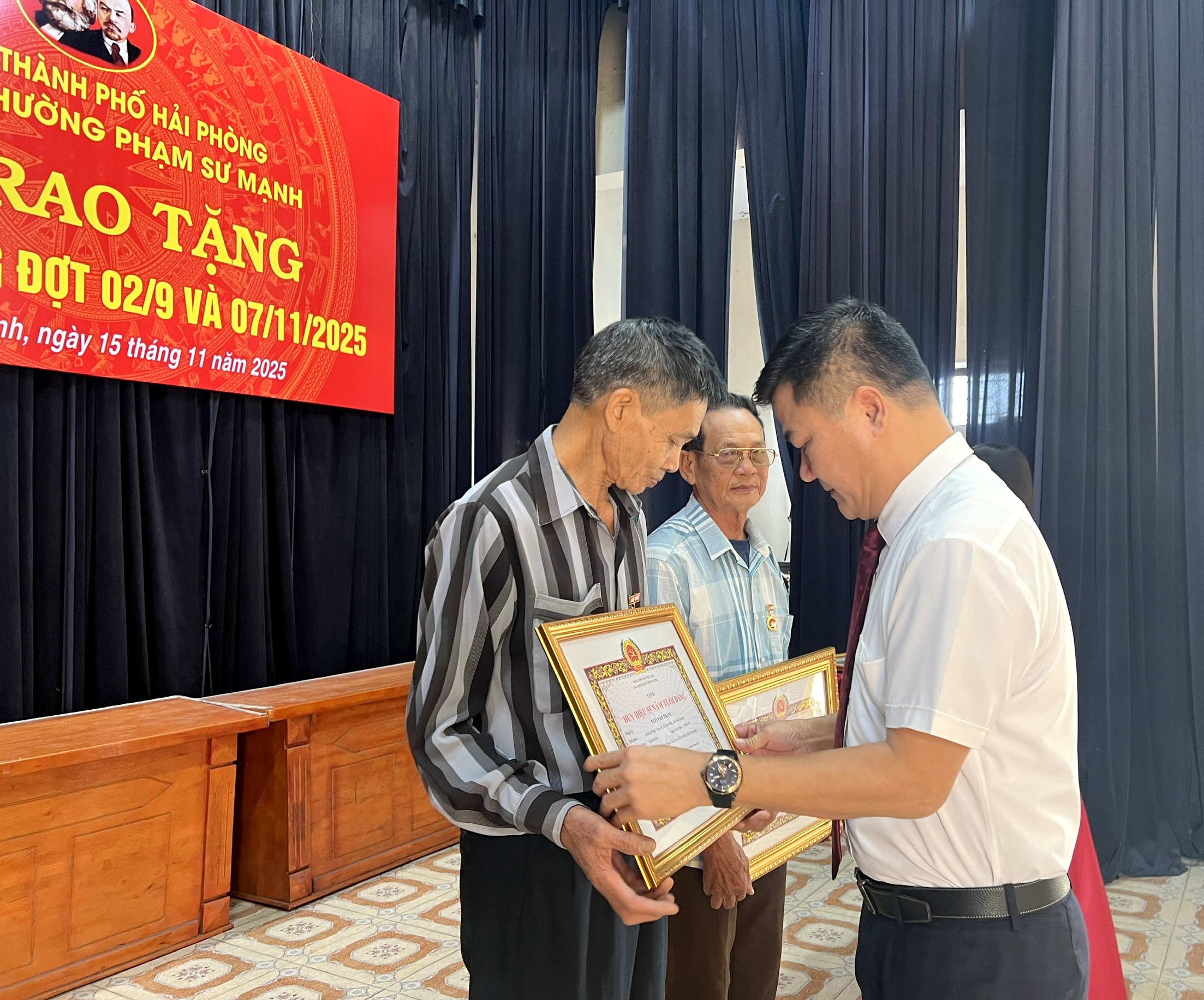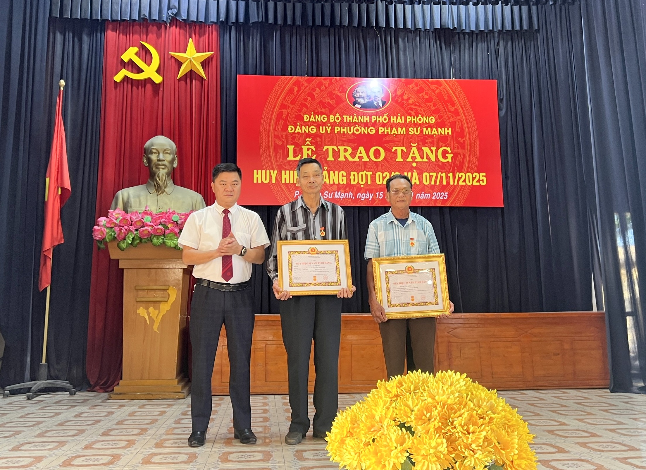Đồng chí Lại Văn Lương, Phó Bí thư Đảng ủy, Chủ tịch UBND phường trao Huy hiệu Đảng tặng các đảng viên lão thànhPhát biểu tại buổi lễ, đồng chí Nguyễn Đình Chuyến ghi nhận và đánh giá cao những đóng góp của các đảng viên lão thành - những “ngọn đuốc sáng” góp phần giữ gìn bản lĩnh, nền tảng và truyền thống đáng tự hào của Đảng bộ phường, nhất là trong giai đoạn phường Phạm Sư Mạnh thực hiện mô hình chính quyền đô thị và nhiệm vụ sau sáp nhập.