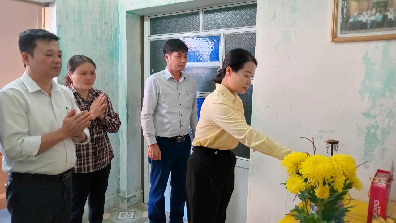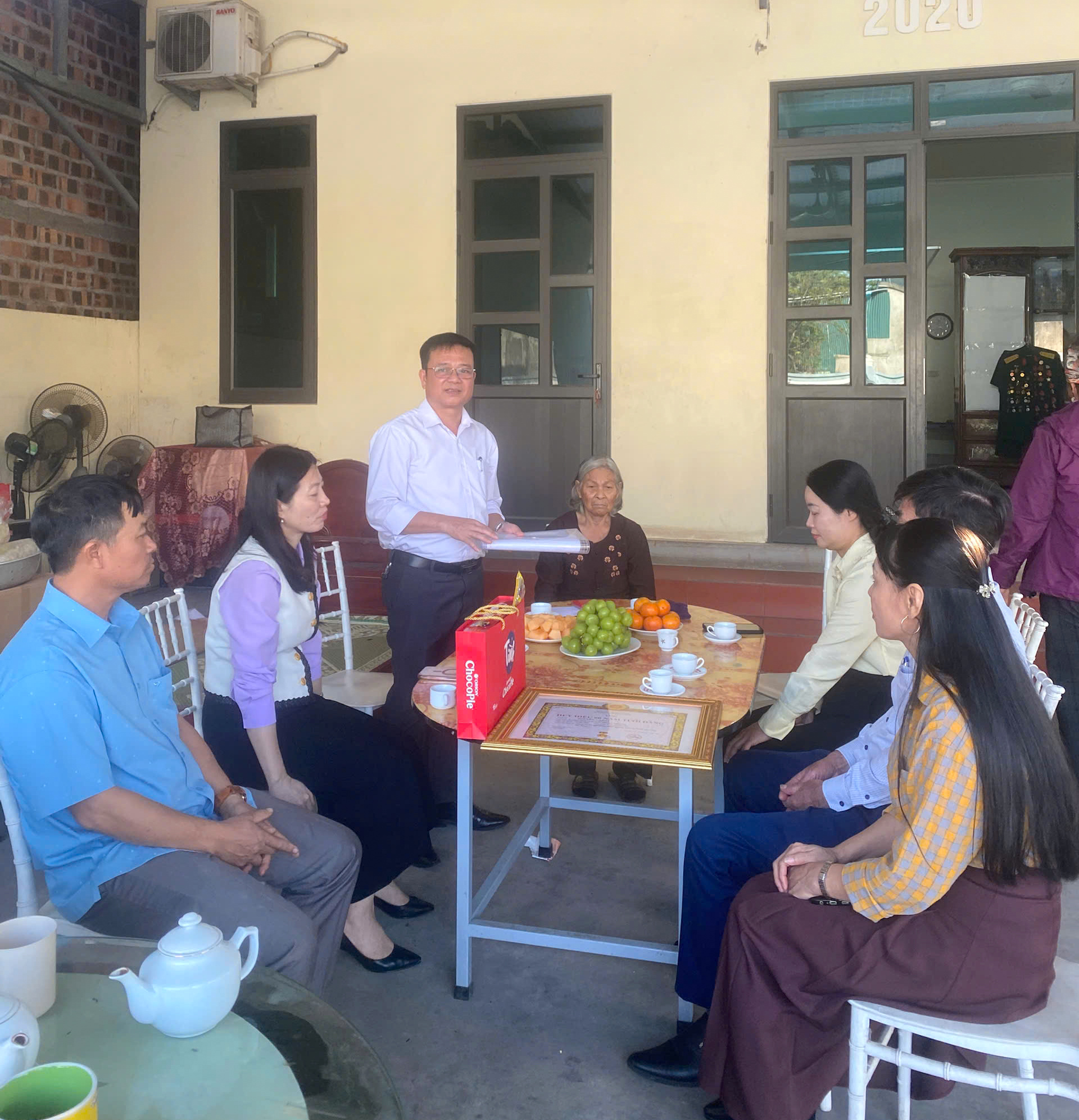 Đoàn công tác của Đảng ủy phường Phạm Sư Mạnh đến thăm gia đình và trân trọng trao Huy hiệu 60 năm tuổi Đảng cho đồng chí Đặng Thị Hoa, đảng viên chi bộ TDP Dương Nham.