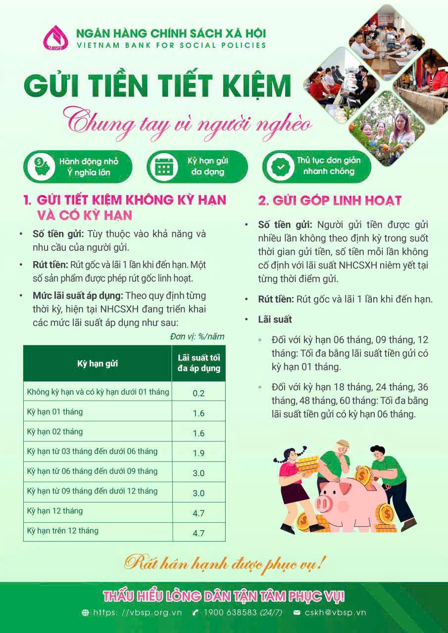 Hãy tham gia gửi tiền tại NHCSXH ngay hôm nay để tích lũy vốn cho bản thân và gia đình, để giành dụm những khoản thu nhỏ trong mục tiêu chi dùng những khoản lớn hơn, để dự phòng rủi ro và chi tiêu bất thường, để không phải đi vay nặng lãi và để chung tay giảm nghèo ổn định xã hội.