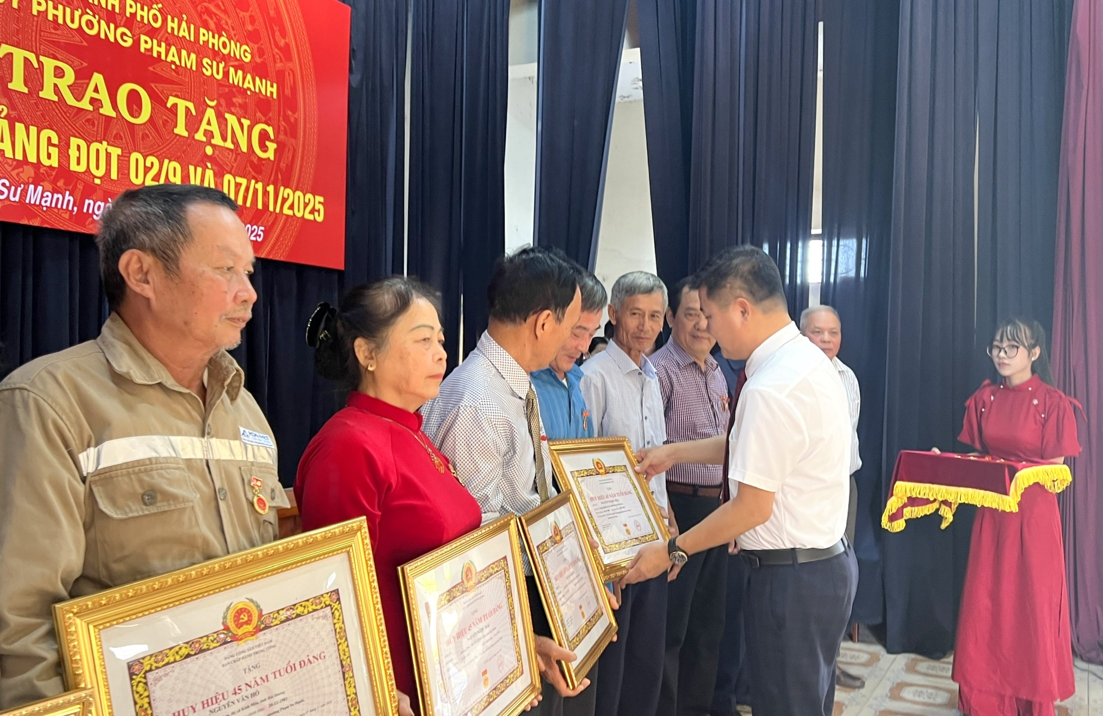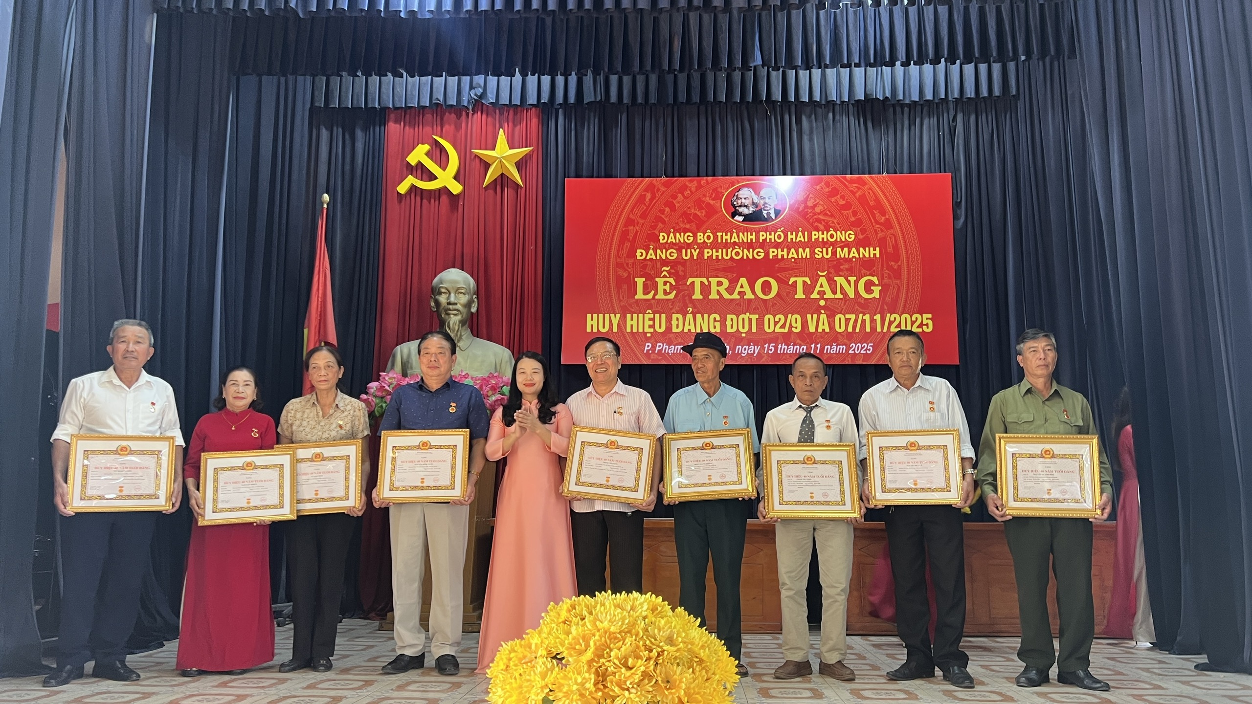 Chiều ngày 15/11/2025, Đảng ủy phường Phạm Sư Mạnh long trọng tổ chức Lễ trao Huy hiệu Đảng cho các đồng chí đảng viên được tặng Huy hiệu 65 năm, 60 năm, 55 năm, 50 năm, 45 năm, 40 năm và 30 năm tuổi Đảng đợt 02/9 và 07/11/2025.