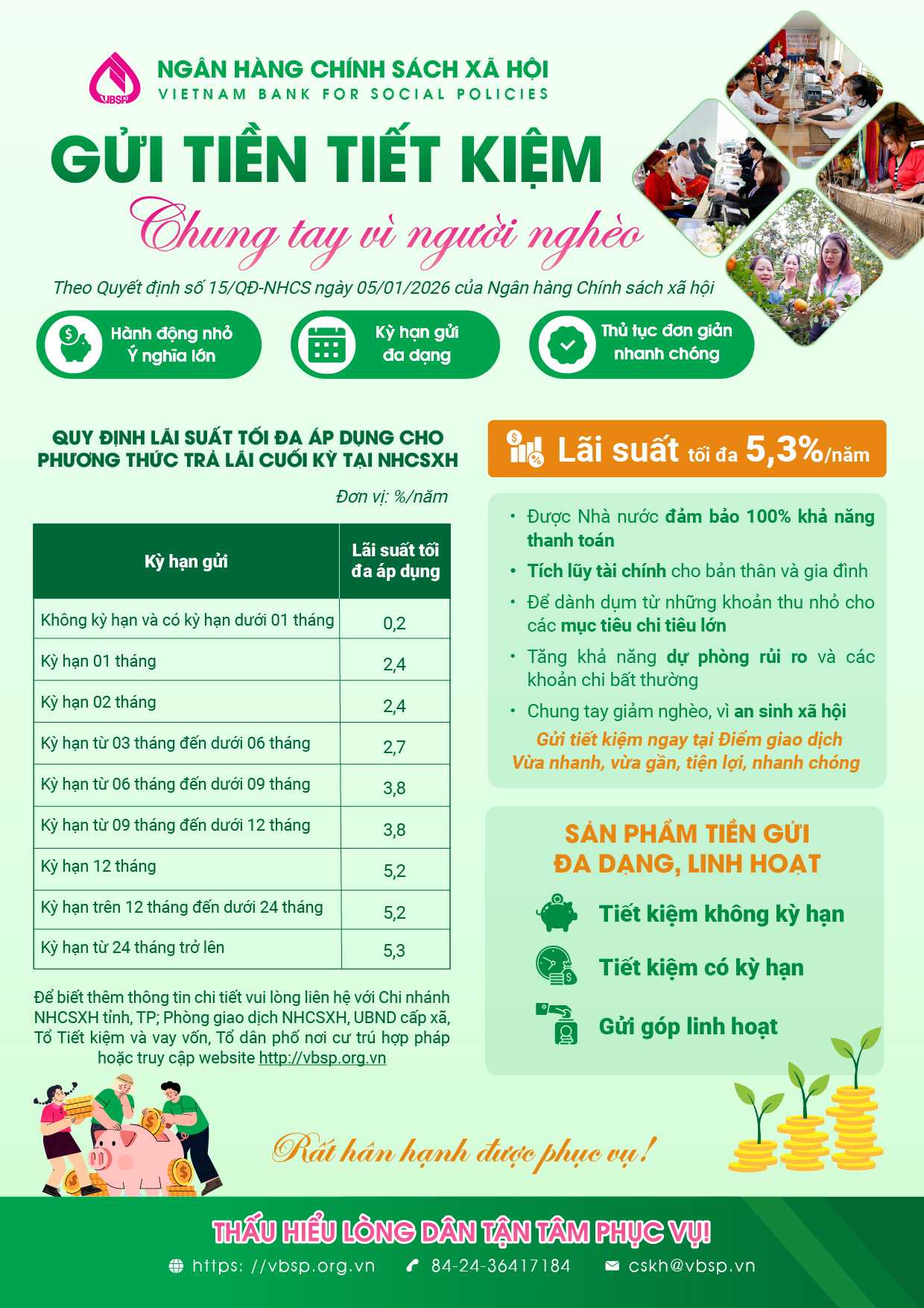Gửi tiết kiệm tại Ngân hàng Chính sách xã hội (NHCSXH) không chỉ là lựa chọn một kênh tài chính an toàn - minh bạch - sinh lời ổn định, mà còn là sự đồng hành cùng các chương trình tín dụng chính sách của Nhà nước vì người nghèo và các đối tượng yếu thế.