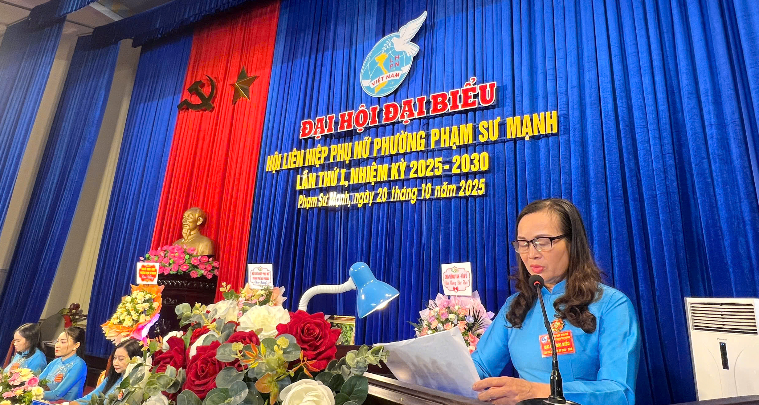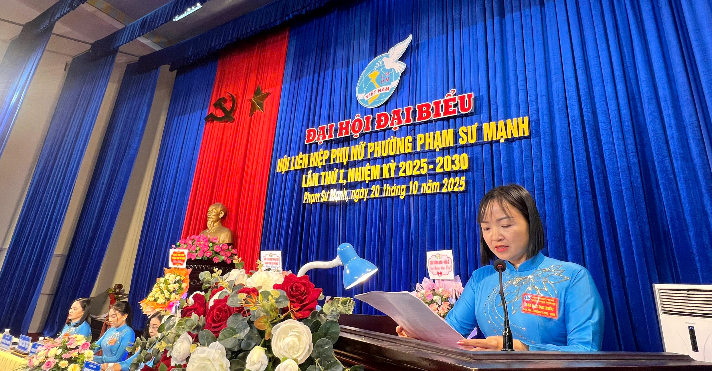 Ngày 20/10/2025, Đại hội đại biểu Phụ nữ phường Phạm Sư Mạnh lần thứ I, nhiệm kỳ 2025 - 2030 đã long trọng diễn ra trong không khí phấn khởi, thi đua sôi nổi chào mừng kỷ niệm 95 năm Ngày thành lập Hội Liên hiệp Phụ nữ Việt Nam (20/10/1930 - 20/10/2025).