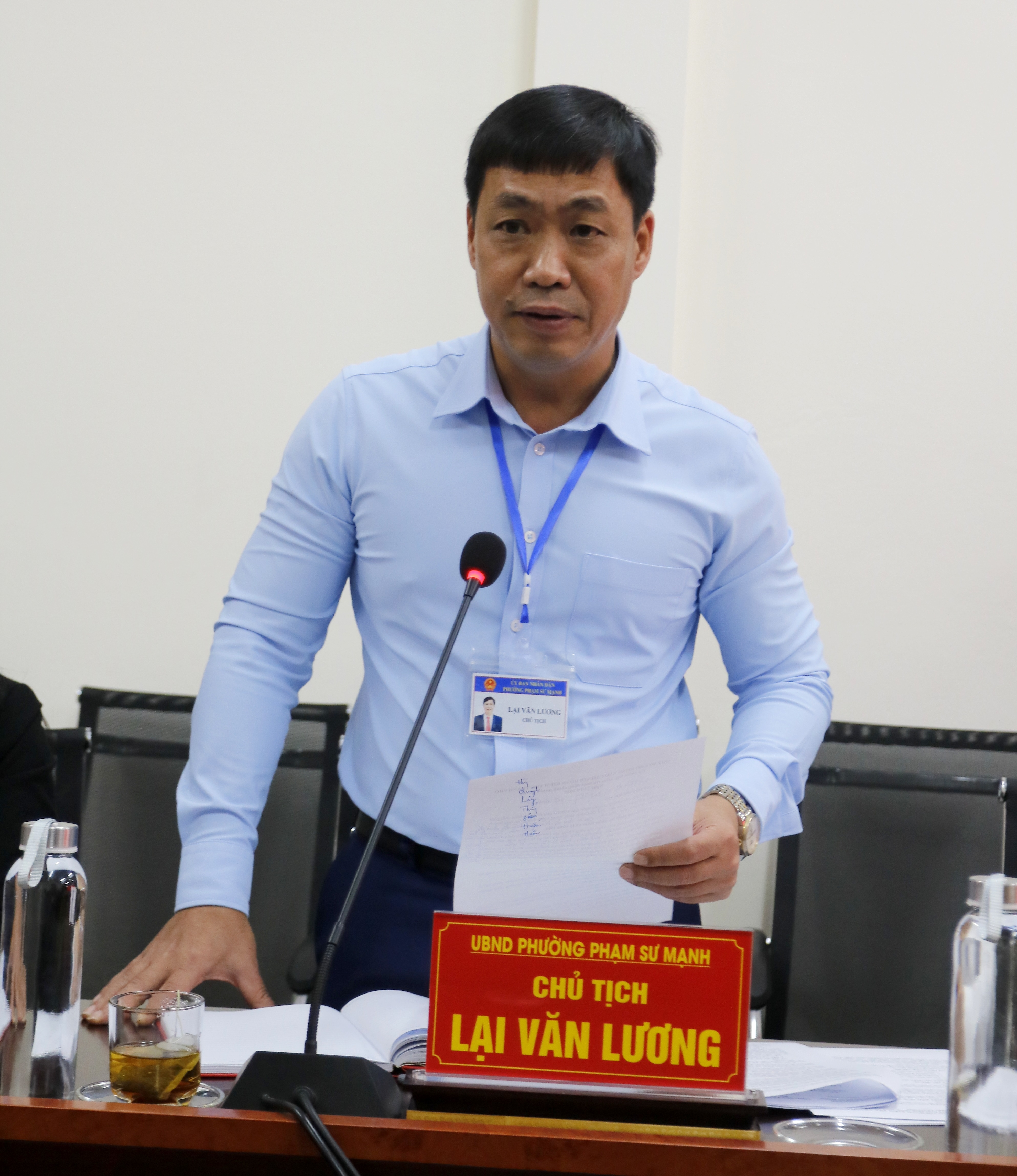 Đồng chí Lại Văn Lương, Phó Bí thư Đảng ủy, Chủ tịch UBND phường Phạm Sư Mạnh nêu một số kiến nghị, đề xuất với lãnh đạo thành phố