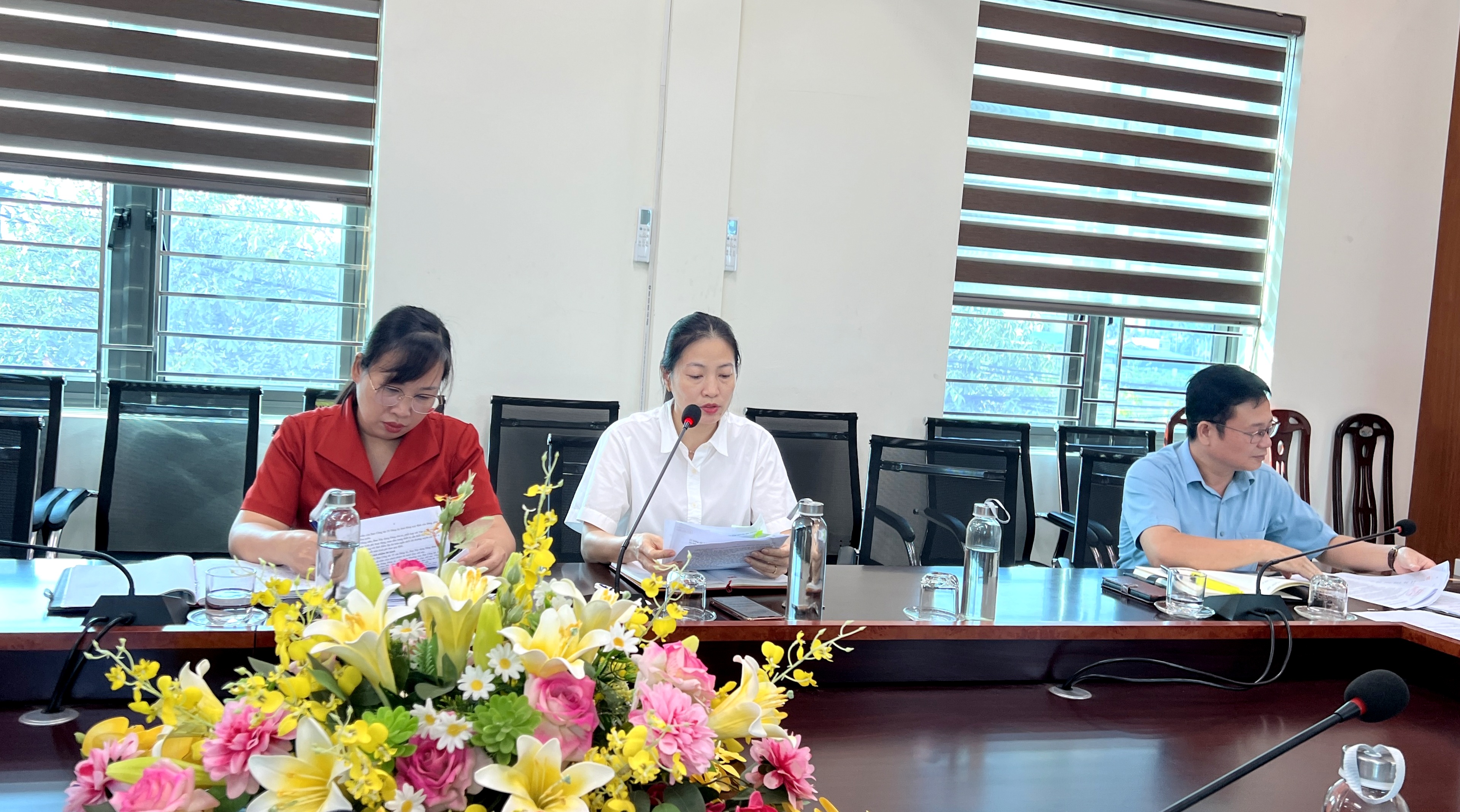 Đồng chí Vũ Thị Bích Quỳnh, Phó Bí thư Thường trực Đảng ủy, Trưởng Ban Công tác 35 Đảng ủy chủ trì Hội nghị Tại Hội nghị, các đại biểu tham gia thảo luận dự thảo Quy chế hoạt động của Ban Công tác 35; dự thảo Thông báo phân công nhiệm vụ các thành viên Ban Công tác 35 và thành viên Tổ Cộng tác viên Ban Công tác 35.