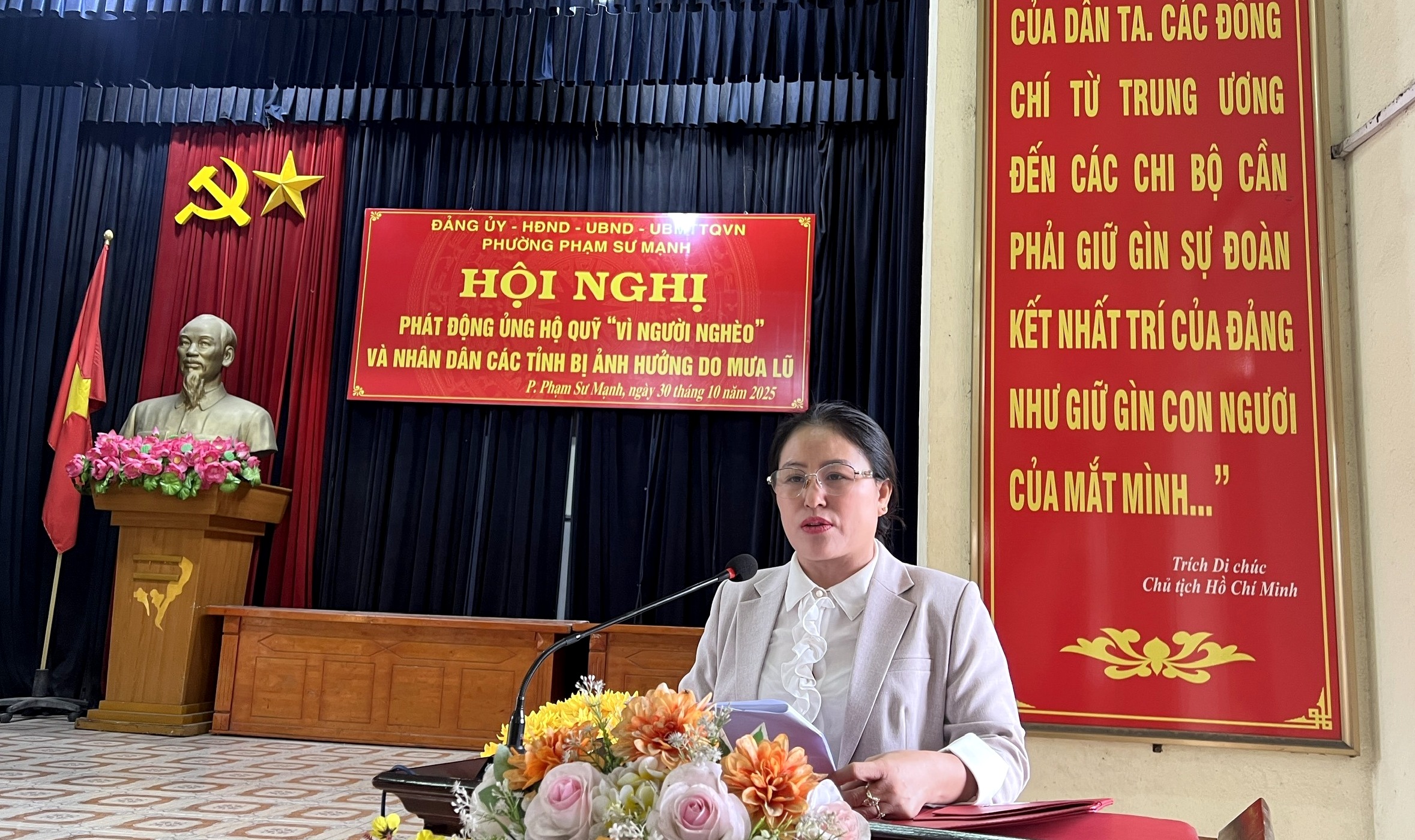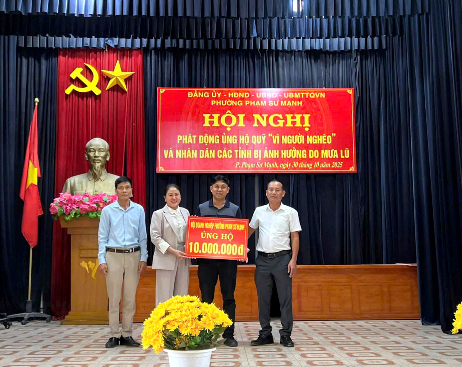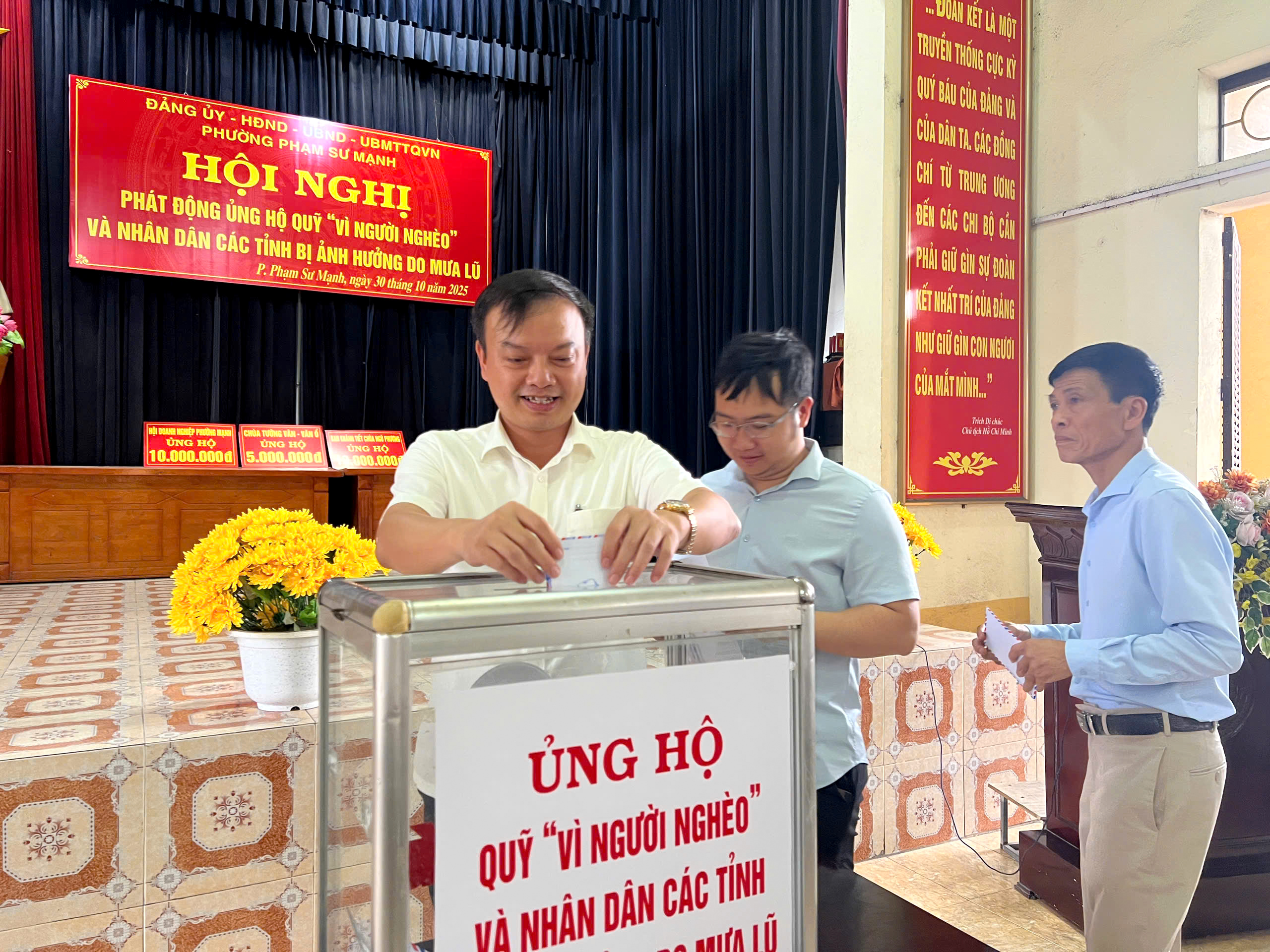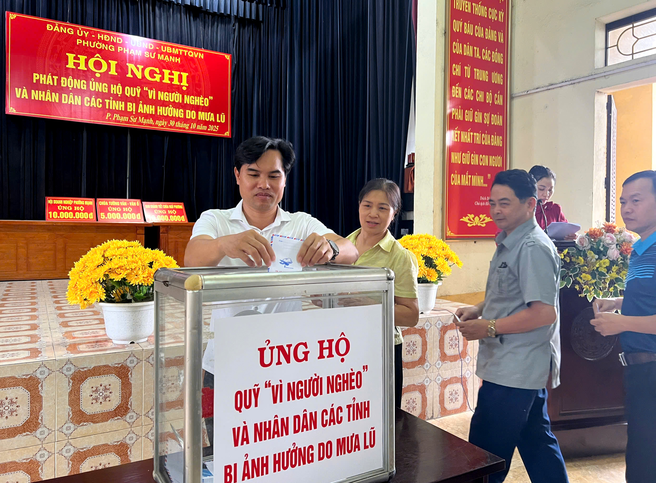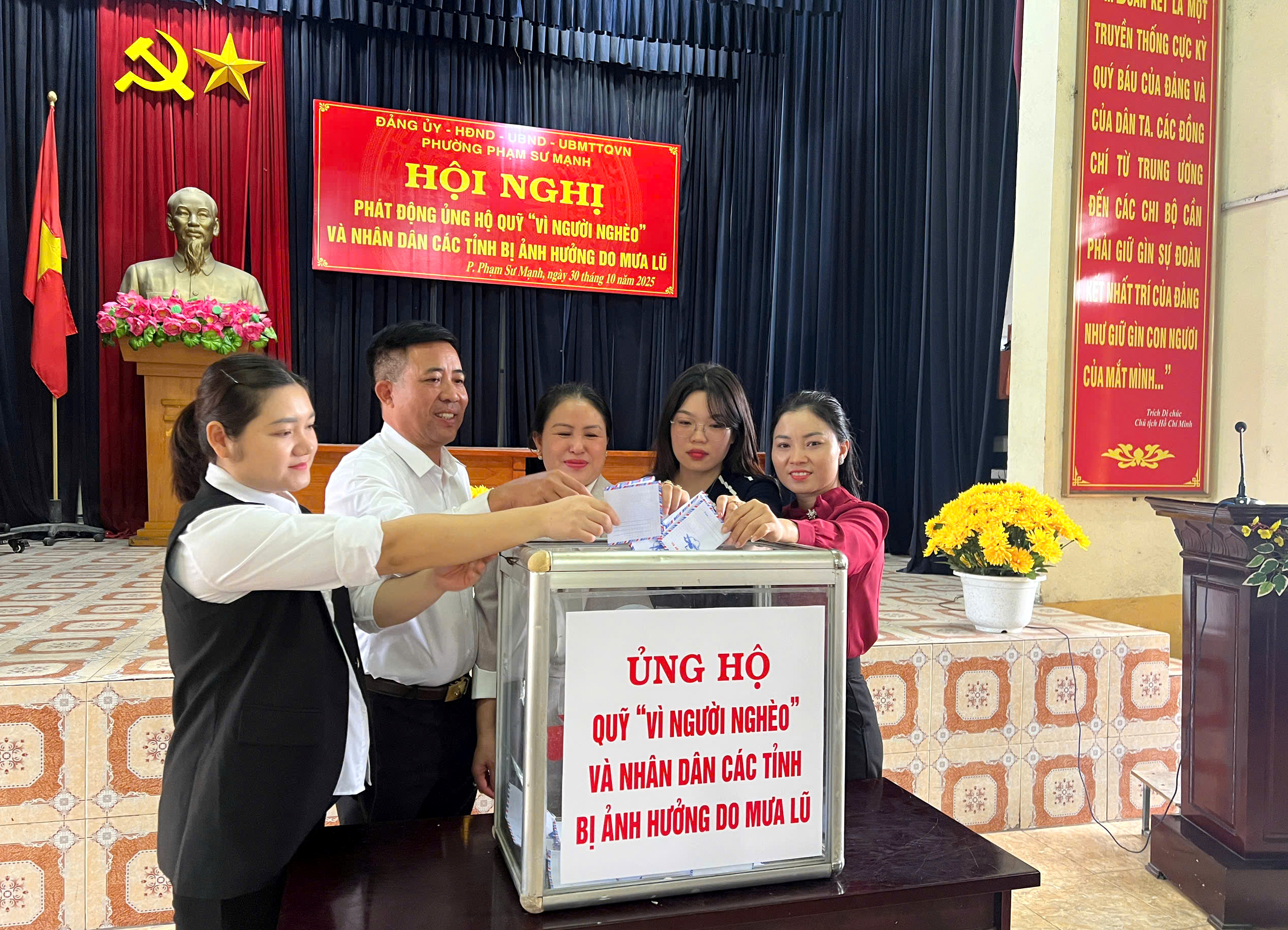 Ngày 30/10/2025, Ủy ban Mặt trận Tổ quốc Việt Nam phường Phạm Sư Mạnh tổ chức Hội nghị phát động ủng hộ Quỹ “Vì người nghèo” và nhân dân các tỉnh bị ảnh hưởng do mưa lũ, hưởng ứng Tháng cao điểm “Vì người nghèo” năm 2025 theo Kế hoạch số 14/KH-MTTQ-BTT ngày 26/9/2025 của Ban Thường trực Ủy ban MTTQ Việt Nam thành phố Hải Phòng.