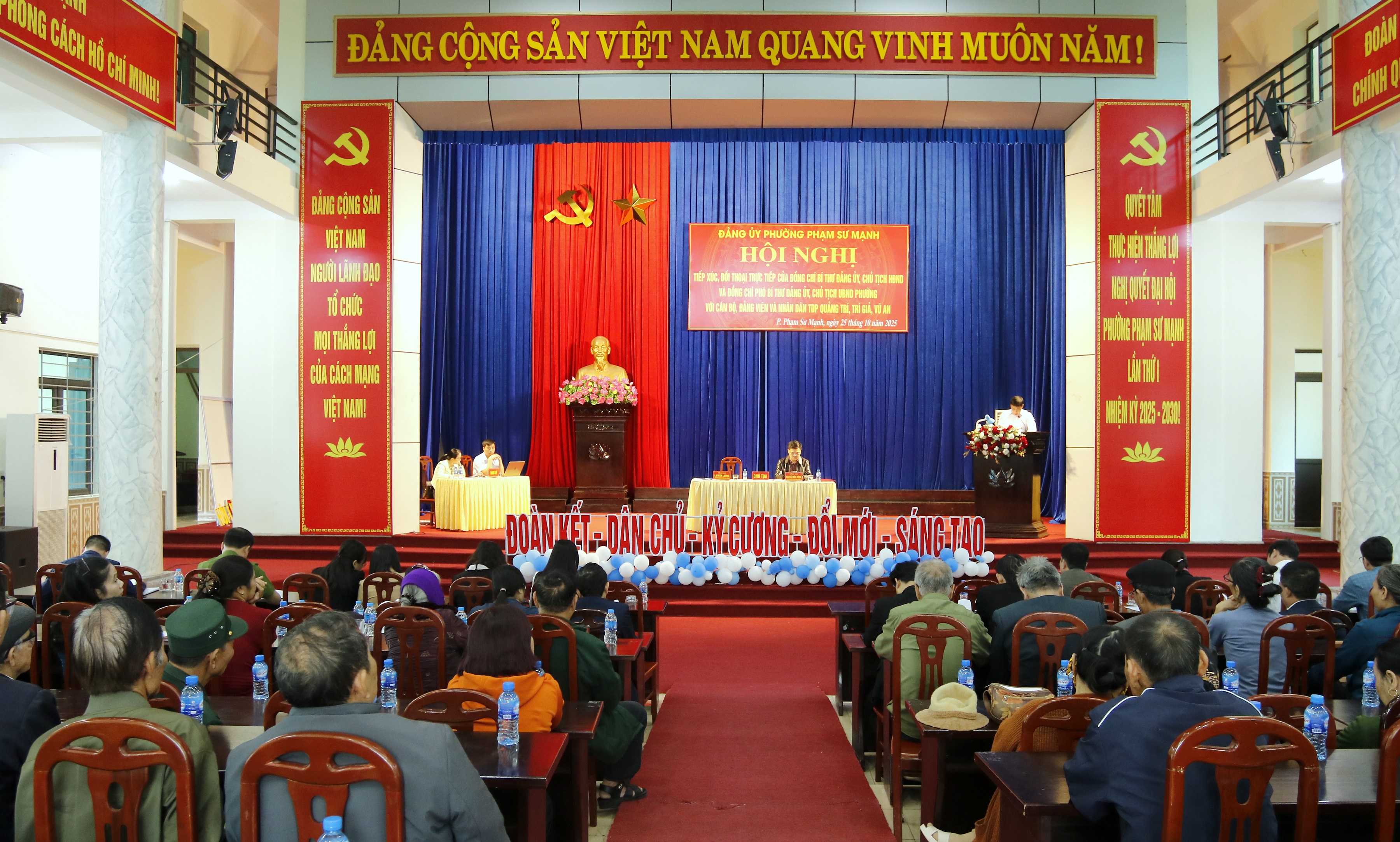 Sáng ngày 25/10/2025, tại Hội trường An Sinh, Đảng ủy phường Phạm Sư Mạnh tổ chức Hội nghị tiếp xúc, đối thoại trực tiếp giữa người đứng đầu cấp ủy, chính quyền phường với cán bộ, đảng viên và nhân dân các tổ dân phố: Quảng Trí, Trí Giả, Vũ An.