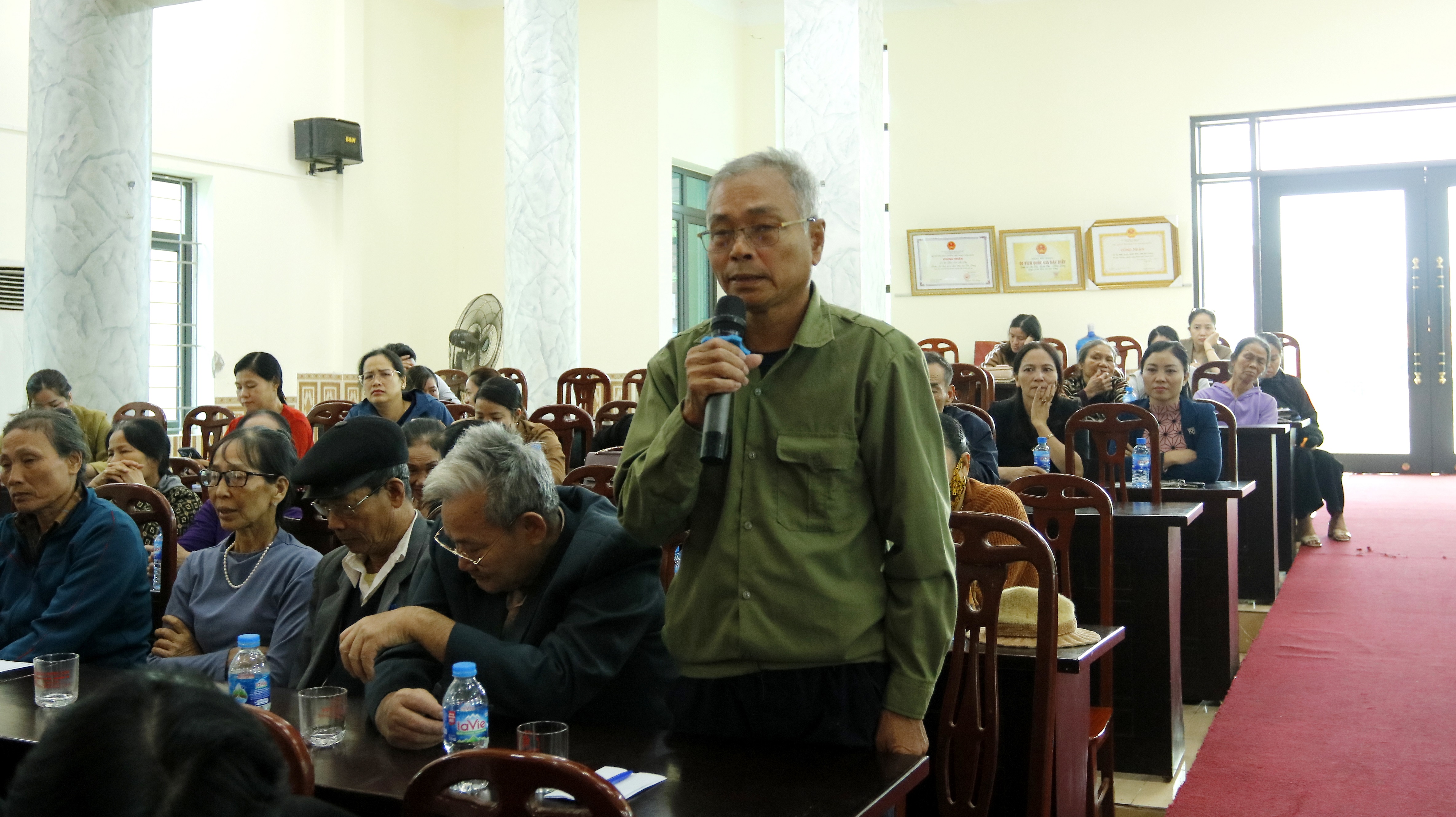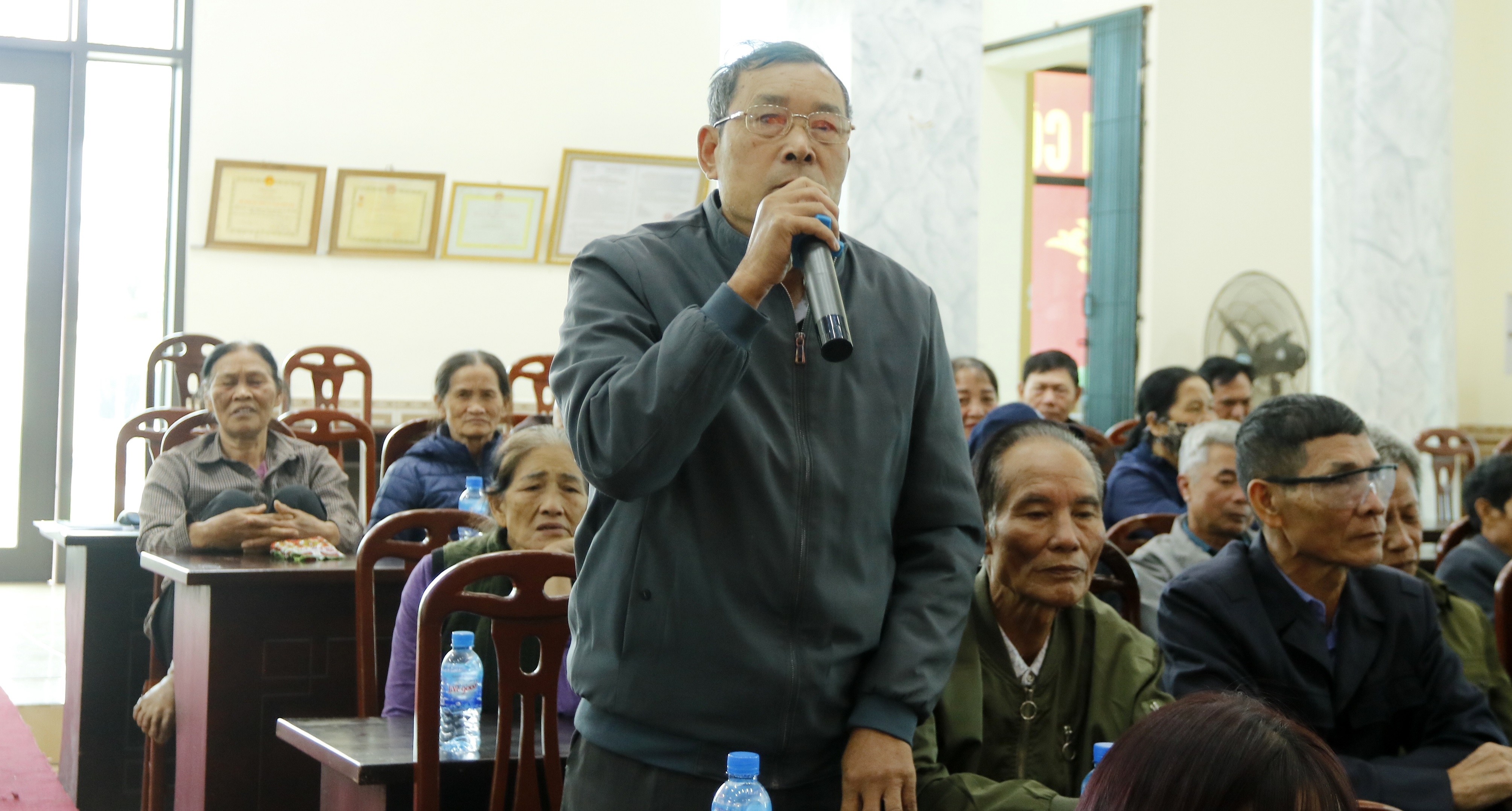 Người dân tại các Tổ dân phố: Quảng Trí, Trí Giả, Vũ An nêu ý kiến kiến nghị, đề xuất với Đoàn Chủ tọa Đồng chí Lại Văn Lương, Phó Bí thư Đảng ủy, Chủ tịch UBND phường trả lời các phản ánh, kiến nghị của người dân.